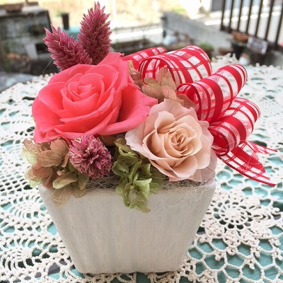 【注意事項】プリザーブドフラワーは本物のお花を特殊加工し、半永久に保存できるお花です。生花と同様花びらはとても繊細です。