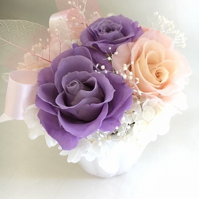 【注意事項】プリザーブドフラワーは本物のお花を特殊加工し、半永久に保存できるお花です。生花と同様花びらはとても繊細です。