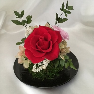 プリザーブドフラワーは本物のお花を特殊加工し、半永久に保存できるお花です。生花と同様花びらはとても繊細です。