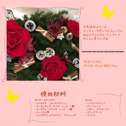 11月のプリザーブドフラワー手作りキットはクリスマスシーズンにピッタリのスワッグアレンジメントです。