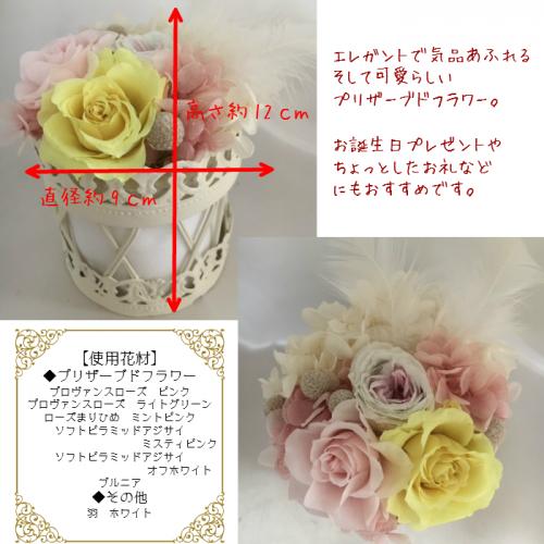【注意点】プリザードフラワーですので水をあげないでください。直射日光のあたる玄関、雨がかかる場所などは避けてください。