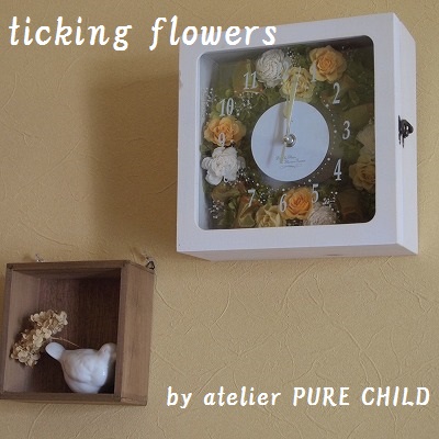 お祝などのギフト部門PURE CHILD人気No,1商品である、時を刻むお花‘花時計’シリーズ。